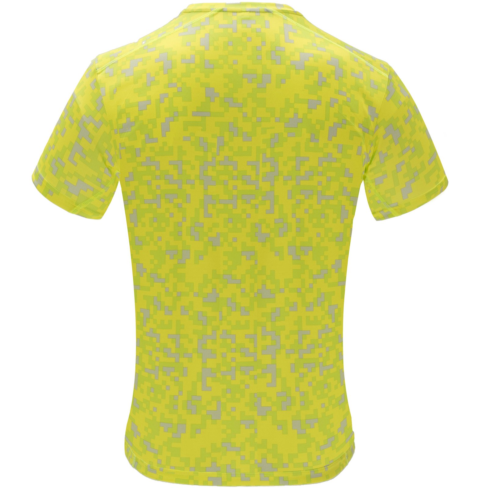 Camiseta técnica de manga corta estampada. Cuello redondo con cubre costuras de refuerzo a contraste en color amarillo flúor. Paneles laterales en interior de manga y en los hombros con remallado a tono. Tejido suave, ligero y transpirable, fácil secado.